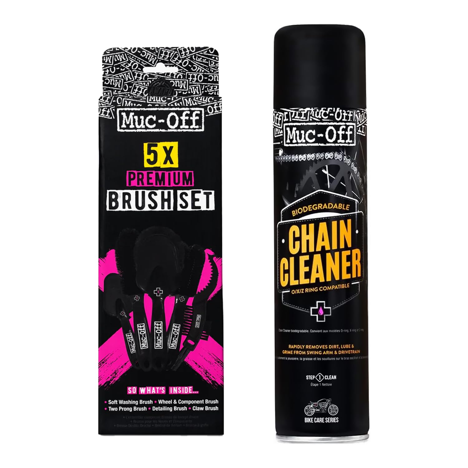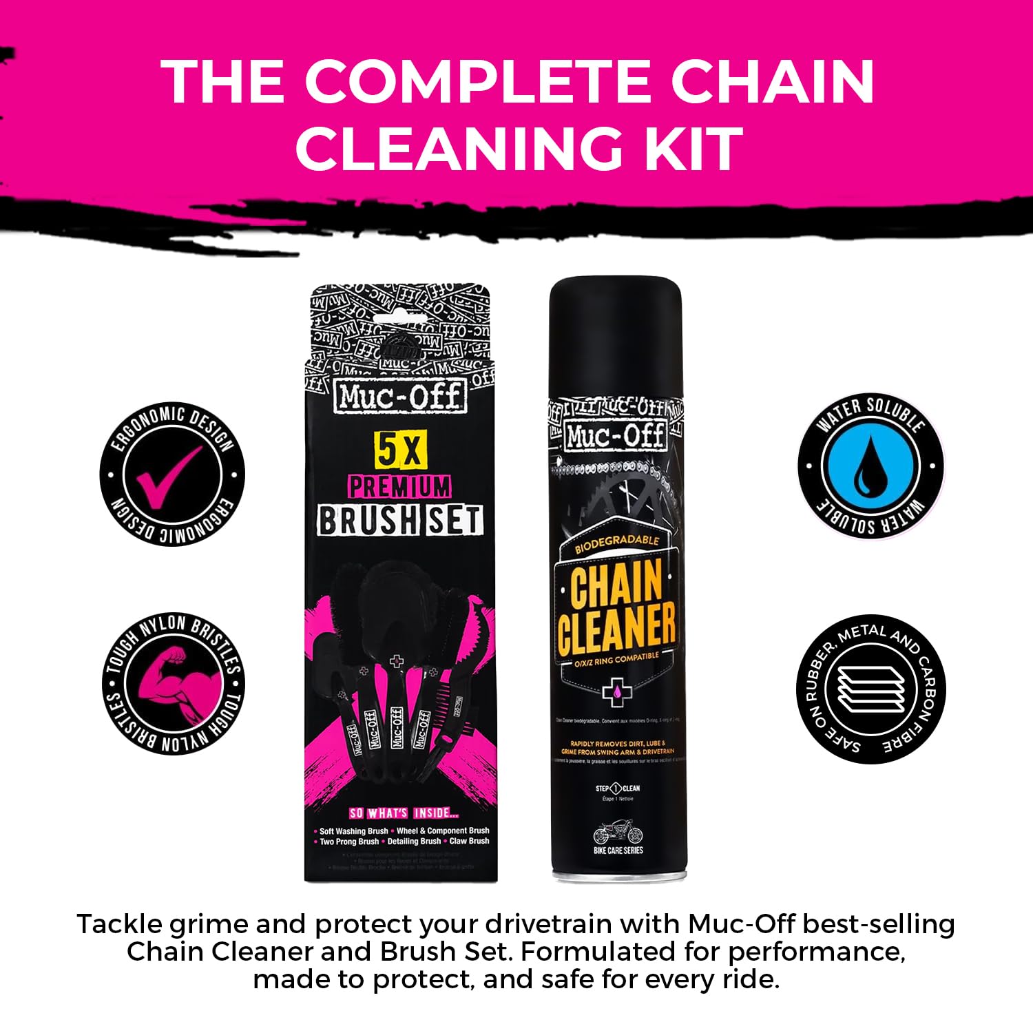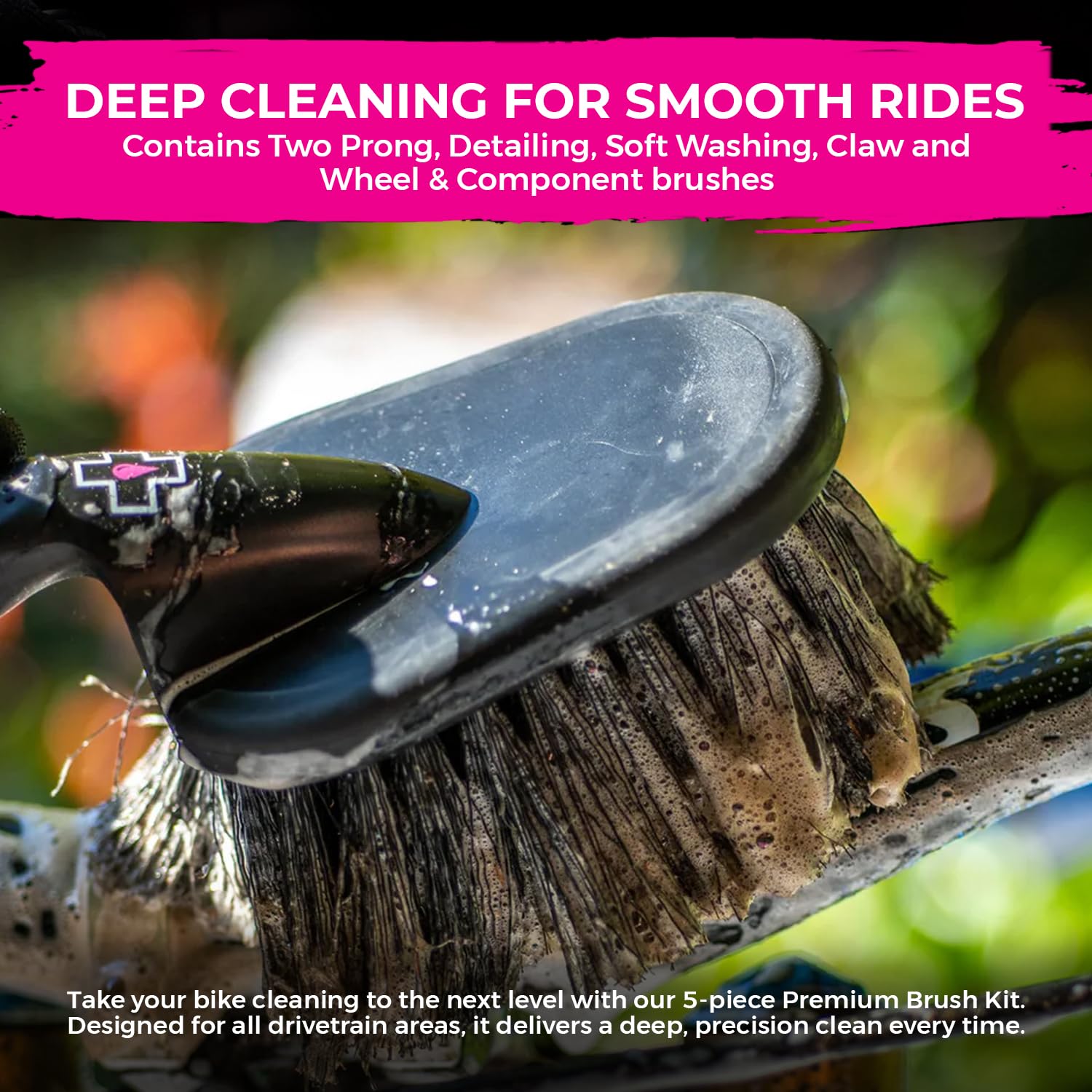 - Brushes: A range of brushes, including a Soft Washing Brush and a Claw Brush, for cleaning different parts of the bike.