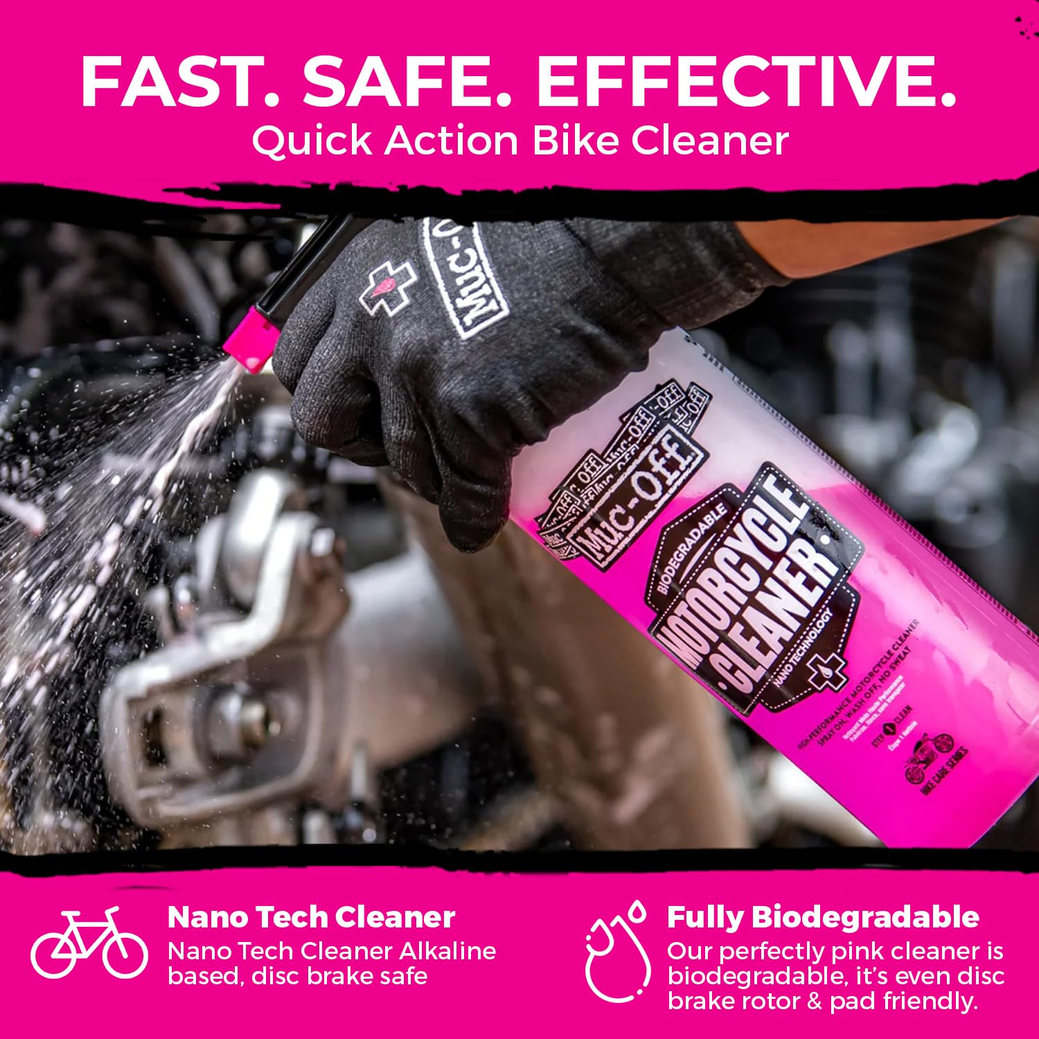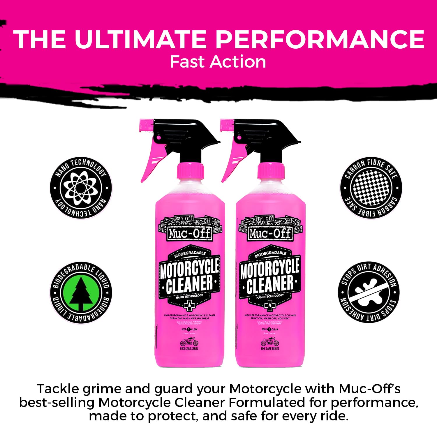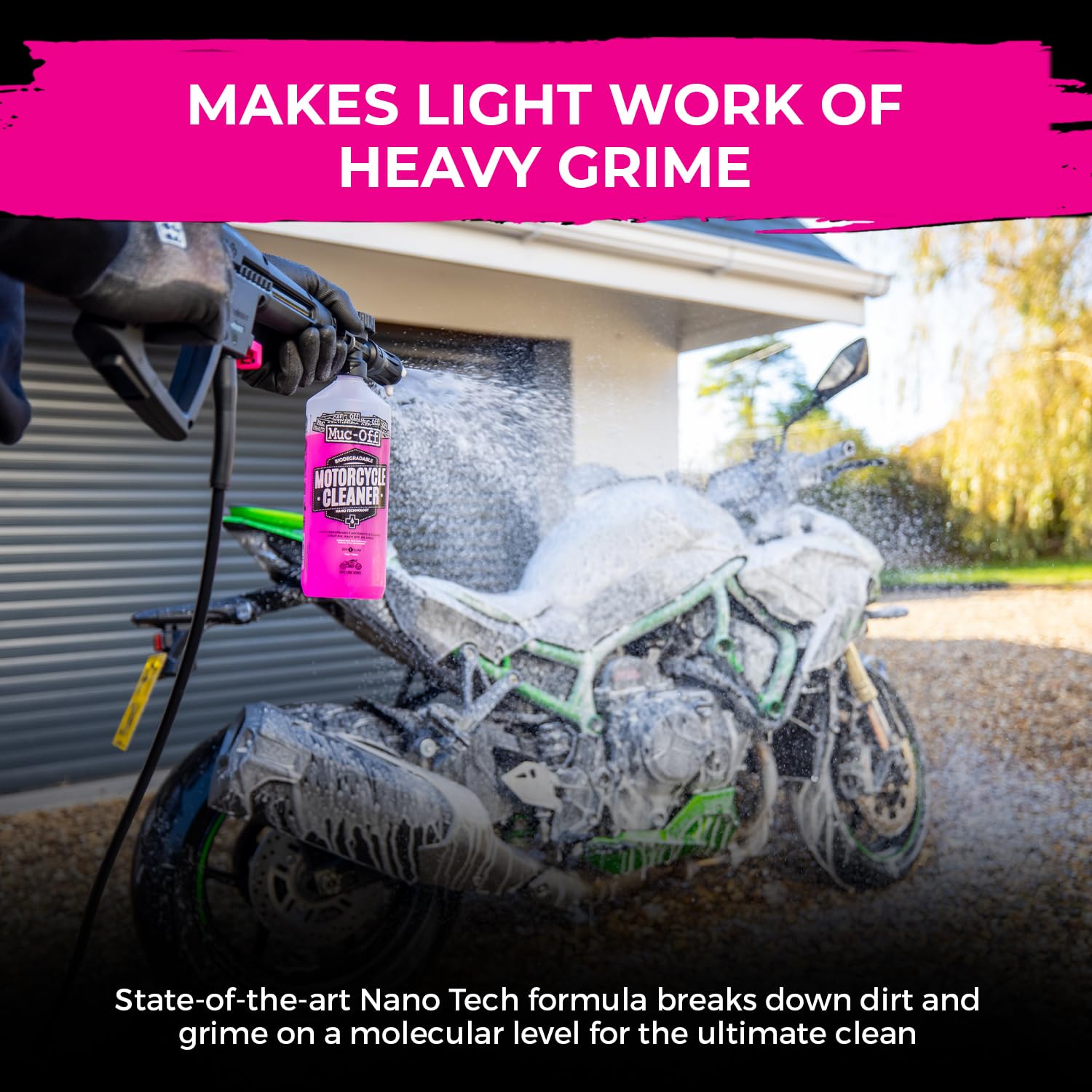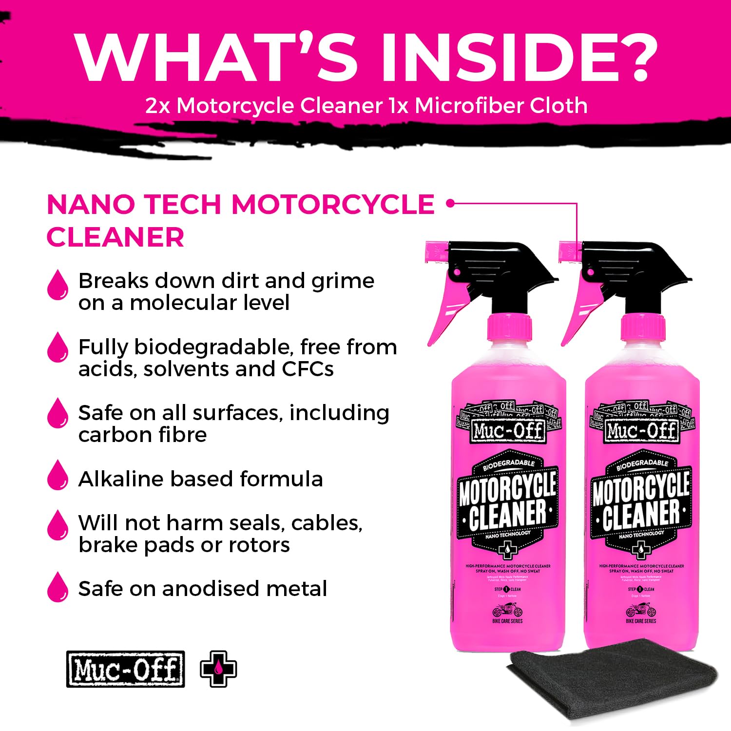A biodegradable, alkaline-based cleaner that uses revolutionary Nano Technology to break down dirt and grime at a microscopic level, safe for all surfaces, including carbon fiber and disc brakes.